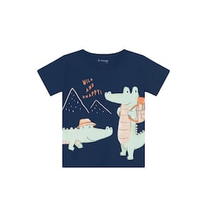 Conjunto infantil menino com estampa de Jacaré Brandili - Azul médio - 1