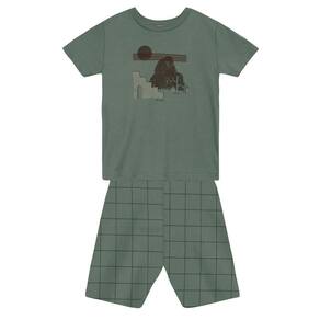 Deixe seu pequeno estiloso e confortável com o conjunto infantil masculino da Mundi! Composto por uma camiseta em meia malha com estampa frontal divertida, e uma bermuda em ribana aurora quadriculada, este conjunto é ideal para os dias de brincadeira. A bermuda possui cós elástico, garantindo liberdade de movimento. Perfeito para compor looks descontraídos, esse conjunto é a escolha ideal para pais que valorizam qualidade e estilo na moda infantil.