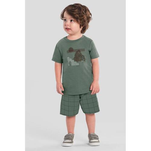 Deixe seu pequeno estiloso e confortável com o conjunto infantil masculino da Mundi! Composto por uma camiseta em meia malha com estampa frontal divertida, e uma bermuda em ribana aurora quadriculada, este conjunto é ideal para os dias de brincadeira. A bermuda possui cós elástico, garantindo liberdade de movimento. Perfeito para compor looks descontraídos, esse conjunto é a escolha ideal para pais que valorizam qualidade e estilo na moda infantil.