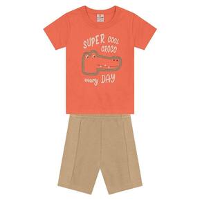 Deixe seu pequeno ainda mais estiloso com o conjunto infantil da Brandili! Composto por uma camiseta em meia malha, apresenta uma divertida estampa de jacaré em aplique bordado, garantindo conforto e charme. A bermuda em moletinho canelado possui cós elástico, proporcionando liberdade de movimento para as aventuras do dia a dia. Ideal para os bebês que adoram explorar o mundo com estilo e conforto. Combine com tênis e um boné para um look perfeito para os dias ensolarados!
