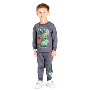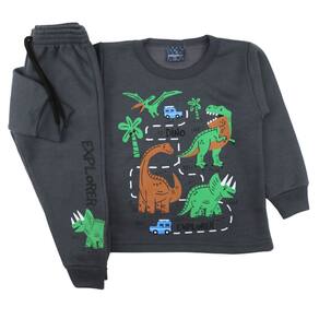Conjunto Infantil Menino Dino em Moletom Flanelado Inverno O Conjunto Infantil Masculino Dino é a escolha ideal para os pequenos que amam dinossauros e conforto. Confeccionado em moletom flanelado, ele oferece toque macio e proteção térmica nos dias mais frios. A blusa tem gola redonda, punhos nas mangas e um desenho de dinossauro em silk que dá um toque especial e divertido ao visual. A calça também acompanha o tema, com estampa em silk para compor o look de forma harmoniosa e criativa. Disponível nas cores azul claro, cinza e bege, o conjunto é uma combinação perfeita de praticidade, diversão e conforto para o dia a dia das crianças. Destaques do Produto: Moletom flanelado macio por dentro