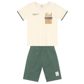 Conjunto infantil menino composto por camiseta elaborada em malha com estampa de skate, conta com mangas curtas e gola redonda. A bermuda é confeccionada em moletinho canelado, com cós elástico e aplique decorativo lateral. Este conjunto é ideal para garantir conforto e estilo nas brincadeiras do dia a dia. Invista!