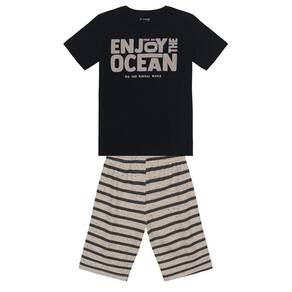 Prepare seu pequeno para arrasar com o incrível conjunto infantil masculino da Brandili! Composto por uma camiseta em meia malha, apresenta uma estampa em puff com uma escrita divertida, perfeita para os pequenos exploradores. A bermuda listrada em moletinho, com cós elástico, garante conforto e liberdade de movimento. Ideal para dias de brincadeiras, esse look é a escolha certa para um visual estiloso e descontraído. Combine com tênis e veja seu garoto brilhar!