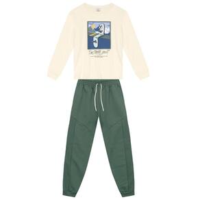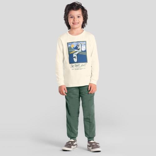 Conjunto infantil menino composto por camiseta em malha com estampa em gel de skate, conta com mangas longas e gola redonda. Já a calça jogger é elaborada em moletinho e moletinho canelado sem pelúcia interna, conta com cós elástico e cadarço ajustável. Este conjunto é ideal para garantir conforto e liberdade de movimento durante as brincadeiras.