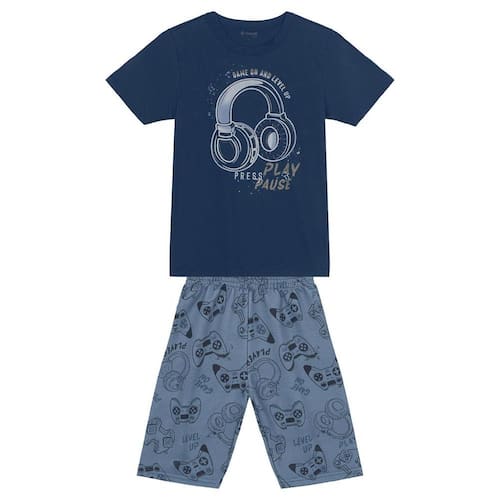 Dê um upgrade no guarda-roupa do seu menino com o incrível conjunto infantil masculino da Brandili! Composto por uma camiseta em meia malha, apresenta uma estampa em puff de temática gamer que vai conquistar os fãs de jogos. A bermuda em moletinho, com estampa similar e cós elástico, garante conforto e liberdade de movimento. Ideal para os dias de diversão, esse look é perfeito para combinar com tênis e acessórios descolados. Deixe seu garoto estiloso e pronto para arrasar!