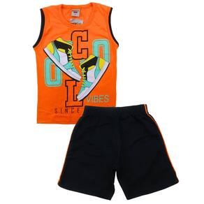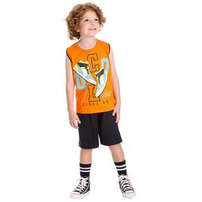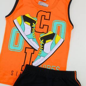 Este conjunto infantil menino é perfeito para os pequenos que se divertem com estilo! A regata em meia malha laranja traz uma estampa divertida de tênis em puff e um detalhe contrastante na manga, proporcionando um visual alegre e moderno. A bermuda preta em moletinho complementa o conjunto com um detalhe contrastante na lateral, garantindo conforto e liberdade de movimento para as brincadeiras do dia a dia.