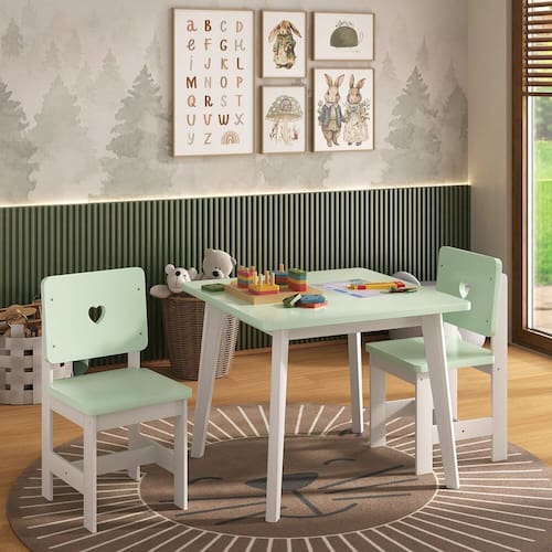 A Mesa Infantil Sofia foi desenvolvida para incentivar a autonomia das crianças. Com altura ideal para que os pequenos alcancem e manuseiem objetos com facilidade, ela é perfeita para atividades lúdicas e educativas. Sua estrutura combina resistência e charme: tampo em MDF de 1,5 cm com acabamento laqueado nas cores azul, branco, rosa ou verde, e pés em madeira maciça de pinus — o que garante durabilidade e facilidade na limpeza.