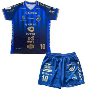Design Exclusivo: O conjunto inclui uma camiseta e um calção, ambos com o logo oficial do Pato Futsal. O design colorido e vibrante, inspirado no uniforme dos jogadores, permite que os pequenos mostrem seu orgulho pelo time com muito estilo.