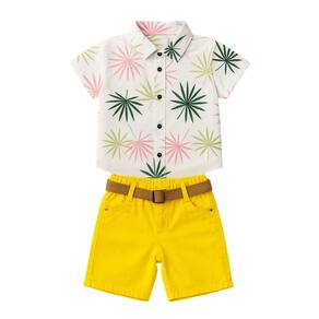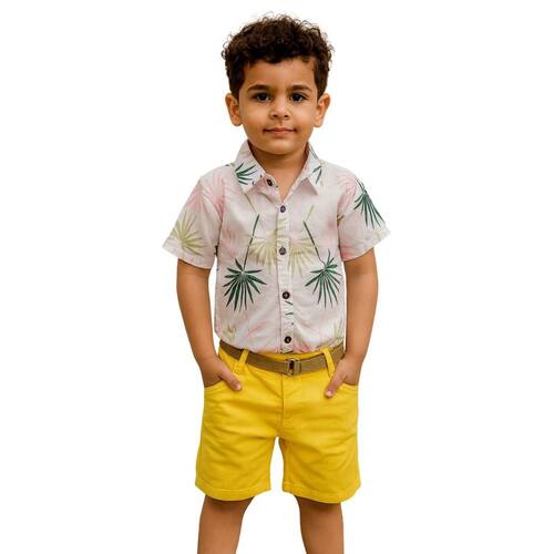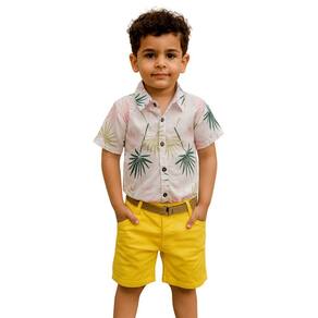 Conjunto Infantil Tropical Camisa e Bermuda é ideal para os dias ensolarados e eventos casuais. A camisa com estampa de folhagens coloridas traz um toque alegre, enquanto a bermuda com cinto adiciona estilo moderno. Perfeito para deixar os pequenos confortáveis e bem-vestidos em qualquer ocasião.