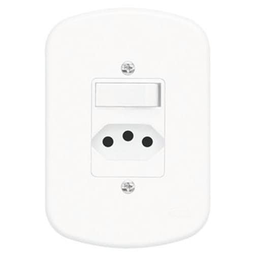 Conjunto Interruptor Simples + Tomada 2P+T 10A 250 Volts Blanc 1357 FAME