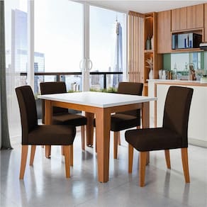 O conjunto de Mesa Miami com 4 Cadeiras Trieste é a escolha ideal para quem busca elegância, conforto e funcionalidade em um só produto. Com design moderno e acabamento sofisticado, ele se adapta perfeitamente a diversos estilos de ambiente. A mesa possui tampo em MDF com verniz vítreo, que confere brilho e proteção, além de uma base em MDF, garantindo estabilidade e resistência. Já as cadeiras, com estrutura em MDF e revestimento em tecido Veluplus, oferecem um toque suave e aconchegante. Os assentos e encostos são acolchoados com espuma de alta qualidade, proporcionando máximo conforto.