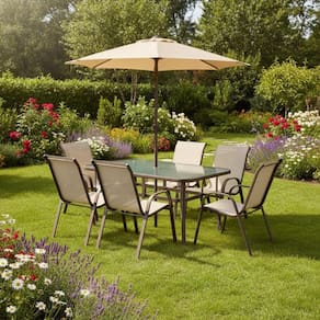 Leve praticidade e sofisticação para sua área externa com o Conjunto Texas da Mor Life! Ideal para reunir a família e os amigos, ele conta com 6 cadeiras confortáveis, mesa com tampo de vidro e um guarda-sol com proteção FPS 35. A estrutura em aço garante durabilidade, enquanto o tecido textilene das cadeiras e o poliéster do guarda-sol oferecem conforto e resistência. Para prolongar a vida útil do produto, mantenha-o em local seco e bem arejado. Evite o uso em dias de chuva, sereno ou ventos fortes.