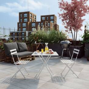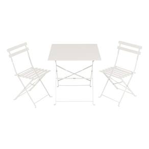 Elaborado com estrutura em aco resistente, o conjunto garante durabilidade e estabilidade. O acabamento na cor branca confere um visual clean e versatil, facil de integrar a diferentes estilos de decoracao. A mesa possui dimensoes ideais para acomodar refeicoes rapidas, cafes da manha ou simplesmente para apoiar seus itens de lazer, enquanto as duas cadeiras proporcionam conforto para relaxar e desfrutar de momentos agradaveis ao ar livre. A montagem e simples, permitindo que voce aproveite seu novo espaco rapidamente.