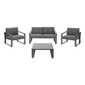 Resumo das Principais Caracteristicas: Tipo de Produto: Conjunto para Jardim Numero de Lugares: 4 Componentes: Sofa, Poltrona, Mesa de Centro Material da Estrutura: Aluminio Cor: Cinza Uso: Externo Numero de Pecas: 3 Marca: Não Informado