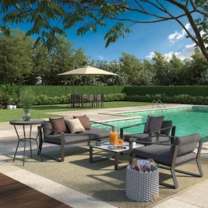 Transforme seu espaco exterior em um oasis de conforto e estilo com o Conjunto para Jardim Lyra Naterial. Composto por um sofa, uma poltrona e uma mesa de centro, este conjunto foi projetado para acomodar confortavelmente ate 4 pessoas, ideal para reunir amigos e familiares. A estrutura robusta em aluminio confere durabilidade e resistencia as intemperies, garantindo a longevidade do seu mobiliario de jardim. A cor cinza neutra e sofisticada se integra facilmente a qualquer paisagismo, adicionando um toque de elegancia moderna ao seu ambiente.