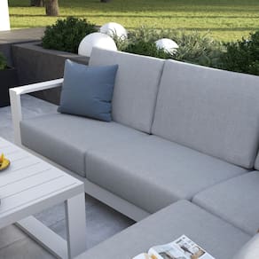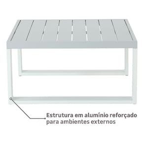 Resumo das caracteristicas: Tipo de produto: Conjunto para Jardim Composicao: Sofa de Canto + Mesa de Centro Capacidade: 5 Lugares Material Principal: Aluminio Acabamento: Branco|Cinza Modelo: Athena Marca: Naterial Codigo: 3548309587 Marca: Não Informado