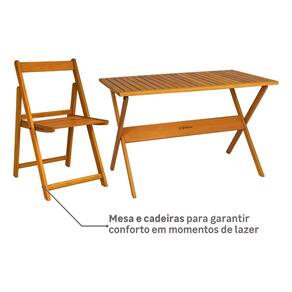 A mesa, com dimensoes de 72x70x114cm, proporciona um espaco amplo e confortavel para refeicoes ao ar livre, reunioes com amigos ou simplesmente para apreciar a paisagem. As seis cadeiras dobraveis inclusas sao ideais para otimizar o espaco quando nao estao em uso, garantindo praticidade e versatilidade. A estrutura robusta e o acabamento de qualidade asseguram durabilidade e resistencia, tornando este conjunto a escolha perfeita para compor seu jardim, varanda ou quintal.