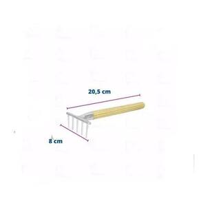 Medidas: - Enxada comprimento 18 cm x 5,5 cm largura - Rastelo 20,5 cm de comprimento x 8 cm largura - Pá 22 cm comprimento x 6 cm largura