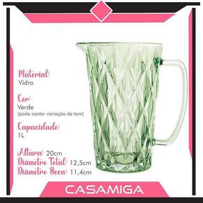 Conjunto Jarra 1L + 6 Taças 330ml Diamante Verde Vidro