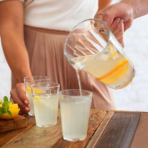 Ideal para famílias menores é robusta e versátil. Possui o design exclusivo da marca, ideal para servir sucos e bebidas em geral.