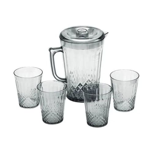 Conjunto Jarra de Litros com 4 Copos de 270ml Acrílico Conjunto Jarra de Litros com 4 Copos de 270ml Acrílico ===================================== Apresente mais elegância e praticidade à sua rotina com este belíssimo conjunto composto por uma jarra com tampa e 4 copos, ideal para servir suas bebidas favoritas com charme e funcionalidade.