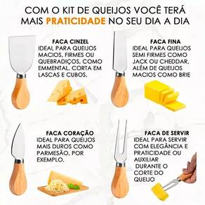 Conjunto jogo cortar queijo 4 peças servir aço inox kit