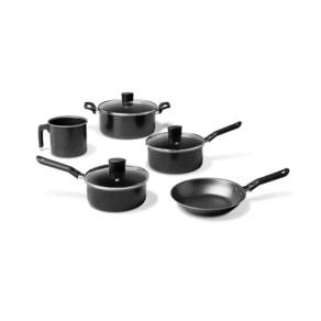 Com estrutura de alumínio que dissipa melhor o calor, cozinhando o alimento por igual, o conjunto de panelas 5 peças da linha Ebony é composto por uma Caçarola de Ø 20 cm, duas Panelas de Ø 18 Ø 16 cm, uma Frigideira de Ø 20 cm e um Fervedor Ø 12 cm. O revestimento interno é antiaderente, não deixando o alimento grudar, mesmo com uso reduzido de óleo, o que torna a limpeza mais fácil. Os cabos de baquelite não aquecem, tornando o manuseio dos utensílios mais fácil e seguro. Disponível na cor preto poliester, com mais brilho às panelas, o Conjunto de panelas Ebony, traz mais destaque para a sua cozinha.
