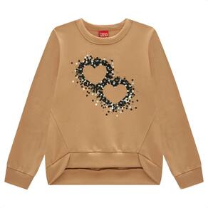 O casaco na cor camurça possui gola redonda , punho nas mangas e um charmoso detalhe na cintura , proporcionando um ajuste perfeito. O bordado de coração com lantejoulas adiciona um toque delicado e sofisticado à peça, tornando-a ainda mais especial.