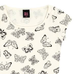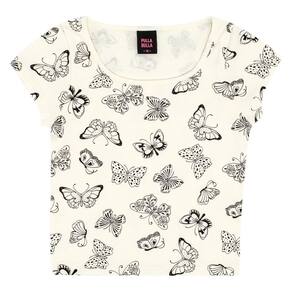Conforto e leveza para qualquer ocasião do dia a dia. Conjunto composto por blusa ribana com elastano leve na cor off white, possuí gola arredondada e estampa de borboletas por toda peça. Já o short sarja na cor preto possuí bolsos funcionais, fechamento com botão frontal e aplicação de strass deixando a peça ainda mais charmosa.