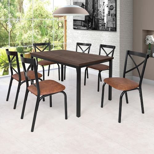 Este tipo de material é muito superior que os acabamentos em Pintura UV (que acaba sendo o tipo mais utilizado na fabricação dos móveis). Medida da Mesa (A x L x P): 78cm x 80cm x 136cm Peso da Mesa: 19,96 kg Mesa suporta até: 10 kg Acabamento da Cadeira/Banco: Pintura Epóxi Acabamento da Mesa: Pintura Epóxi Acompanha Manual de Instalação: Sim Almofada do assento: Removível Almofada do encosto: Não Possui Altura do Conjunto: 78 cm Ambiente Principal: Cozinha Cadeira/Banco estofada: Somente Assento Estofado Cadeira/Banco suporta até: 100 kg Complexidade da Montagem: Baixa: pode ser montado por uma pessoa sozinha Cor: Preto Fosco/Caramelo/Amendoa Cor da Base: Preto Cor do Produto: Preto Fosco/Caramelo/Amendoa Cor do Tampo: Marrom Cor Secundária: Marrom De Canto (Canto Alemão): Não Design da Base: 4 Pés Escala de Brilho: Semi-Brilho Espessura do Tampo: 30 mm Estrutura do Assento: Madeira/Espuma/Sintético Estrutura do Encosto: Aço Formato do Tampo: Retangular Itens Inclusos: 1 Base de Mesa, 6 Cadeiras, 1 Tampo de Madeira, Kits de Parafusos e manual de montagem Linha ou Coleção: Karina Manual de Montagem e Instalação: https://product-hub-prd.madeiramadeira.com.br/910630/documents/7d269c98-1ec5-4576-a334-4401a3dc8366198468060017168307630292.pdf Material da Base da Mesa: Aço Carbono Material da Estrutura da Cadeira: Aço Carbono Material do Tampo: BP Material Principal: Aço Carbono Material Principal das Cadeiras/Bancos: Aço Carbono Medida da Base (A x L x P): 75cm x 80cm x 136cm Medida da Cadeira/Banco (A x L x P): 90cm x 50cm x 53cm Medida do Tampo (L x C x E): 80cm x 136cm x 3cm Mesa Dobrável: Não Mesa Extensível: Não Necessita Montagem: Sim Origem do Produto: Nacional Peso da Cadeira/Banco: 4,25 kg Possui Apoio para Braços: Não Possui Apoio Para os Pés: Não Possui Prateleiras: Não Possui Rodízio: Não Possui Suporte Giratório: Não Possui Vidro: Não Quantidade de Cadeiras: 6 Quantidade de Lugares: 06 Recomendações de Uso, Manutenção e Limpeza: Não utilizar produtos quimicos na limpeza, nâo expor a chuva, nâo reclinar, nâo pisar Sistema de Montagem: Parafusos Tipo de Assento: Removível Tipo de Encosto: Fixo