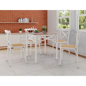 Conjunto Katrina Branco 4 Cadeiras Tampo De Madeira Quadrado 90 Cm AsturiasPor que o Conjunto de Mesa de Jantar com Cadeiras Katrina?Deixe sua sala de jantar ou cozinha ainda mais chique com este lindo conjunto de Conjunto de Mesa de Jantar com Cadeiras Katrina! Com design moderno e elegante, sua casa vai ganhar móveis de alta qualidade e que deixarão a sua decoração ainda mais linda! Com 4 cadeiras com a estrutura em aço e o assento em espuma D14, revestimento em Couro Artificial, deixando as peças ainda mais confortáveis. E para completar o conjunto, a mesa possui o tampo em madeira, um luxo! Lindo, né? Leva!Informações técnicas:Conteúdo da Embalagem: 01 Mesa e 04 cadeiras.Modelo do Conjunto: KatrinaCor predominante do Conjunto: Branco Instruções/Cuidados: Limpar com pano levemente umedecido com águaMaterial: Estrutura em aço com Pintura E-Pox // Tampo em madeira // Assento em espuma D14 // Revestimento em corinoNecessita Montagem? Sim, sugerimos a contratação do nosso serviço de montagem (para os CEPs em que o serviço está disponível) ou de algum profissional experiente de sua preferência.Descrição do Tamanho (Mesa):Altura: 76 cmLargura: 90 cmProfundidade: 90 cm Descrição do Tamanho (Cadeira):Altura: 90cmLargura: 48cmProfundidade: 46cmConjunto Katrina Branco 4 Cadeiras Tampo de Madeira Quadrado 90 Cm Asturias