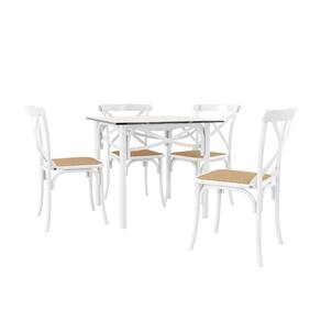 Conjunto Katrina Branco 4 Lugares Tampo De Madeira Quadrado 90 Cm Asturias