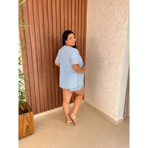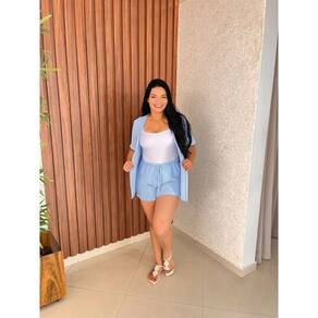 O conjunto é composto por um kimono e um short. O kimono, que pode ser interpretado como um cardigã ou blazer leve, possui mangas curtas e um caimento solto e fluido, sem fechamento frontal. A peça de baixo é um shorts com modelagem soltinha, que conta com elástico na cintura e bolsos laterais, proporcionando conforto e um ajuste casual. As peças são feitas em um tecido leve. Marca: Não Informado