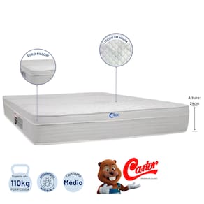 - Enchimento Interno: 1 Lamina D20 / Lamina de Espuma D26 / AG no Enchimento - Revestimento: Malha - Nível de Conforto: Intermediário - Pillow Top: Euro One Face