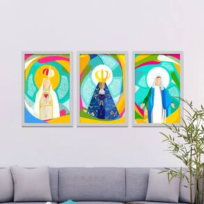 Conjunto Kit 3 Quadros Santas Católicas Moldura Branca 3 Quadros 45x33cm cada Tamanho Montado 45x103cm A melhor qualidade em Molduras do Mercado Única com Moldura de madeira Pinus 100% lisa, livre de imperfeições com superfície laqueada . Não é MDF. Quadros com vidro e pendurador. Os quadros vão Super Embalados garantindo que cheguem intactos. Marca: Não Informado