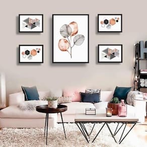 Conjunto Kit 5 Quadros Decorativos Geométrico Rose Gold Sala