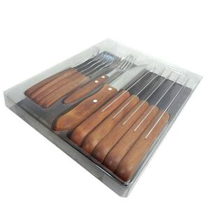 Conjunto para Churrasco 12 peças MOR Kit com garfos e facas especiais para a ocasião! Características: - Conjunto para Churrasco 12 peças MOR - Composto por 6 garfos e 6 facas - Design especial para completar a mesa na hora do churrasco com a família e amigos - Talheres em aço inox com cabo em madeira - Super resistentes e duráveis - Podem ir à lava-louças - A faca de serra é diferenciada pois possui lâmina mais larga e cabo robusto - Garante fácil manuseio e corte preciso para carnes Conteúdo da embalagem: - 01 Conjunto para Churrasco 12 Peças Detalhes: - Produto novo na caixa a pronta entrega com garantia e nota fiscal - Medidas da embalagem: Aprox. 28cm x 24 cm x 5cm - Peso do produto na embalagem: aprox. 750g - Garantia de 3 meses contra defeito de fabricação PRODUTO NOVO COM GARANTIA E NOTA FISCAL