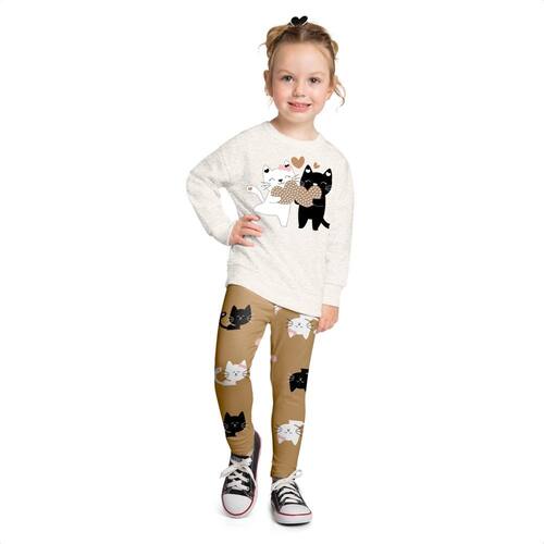 Conjunto Kyly Menina Moletom Gelo Mescla e Legging Camurça - Delicadeza e conforto! Moletom peluciado com gatinhas e strass, calça legging camurça estampada.