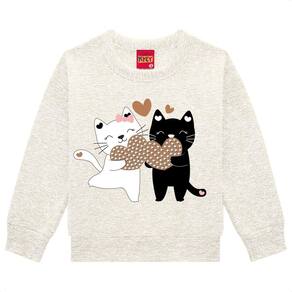 A blusa de moletom peluciado vem na elegante cor mescla gelo , trazendo uma estampa charmosa de gatinhas com aplicação de strass , adicionando um toque delicado e sofisticado. Seu modelo clássico com gola redonda e punho nas mangas garante um caimento confortável.