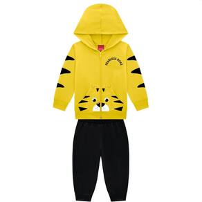 O Conjunto Moletom Peluciado com Touca para Menino Bebê da Kyly é a escolha perfeita para garantir que seu bebê esteja quentinho e cheio de estilo. A blusa amarela conta com uma estampa de tigre divertida e um aplique de orelhinha no bolso, trazendo um toque especial e encantador.