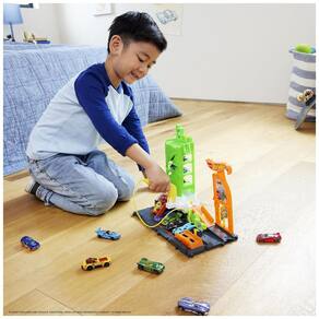 Com espaço para até 10 veículos Hot Wheels em escala 1:64, o set oferece armazenamento e estacionamento para seus carros, além de incluir um carro Hot Wheels (veículos adicionais vendidos separadamente). Detalhes extras nas trilhas da base ampliam as opções de contação de histórias, estimulando brincadeiras criativas e independentes.