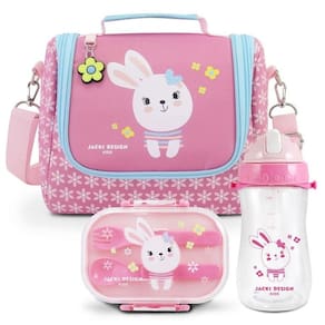 Conjunto Lancheira Térmica com Garrafa 460ml e Pote p/ lanche de 2 Andares 400ml Rosa - Montamos um kit perfeito pra você!