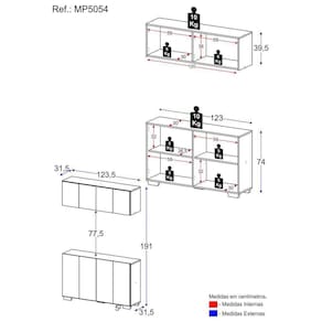 Dimensões do produto montado: Armário Aéreo - Altura: 39,5cm | Largura: 123,5cm | Profundidade: 31,5cm Balcão - Altura: 74cm | Largura: 123cm | Profundidade: 31,5cm *Você pode consultar as medidas detalhadas na imagem técnica do produto.