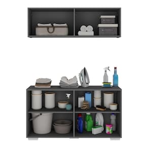 Transforme sua lavanderia num ambiente funcional e elegante com o Conjunto Lavanderia Multiuso Armário Aéreo e Balcão 4 Portas Multimóveis MP5054. Fabricado em MDP (15mm) com acabamento acetinado (cerca de 20% de brilho), garante durabilidade e resistência. Composto por um balcão e um armário aéreo com 4 portas e prateleiras, este kit oferece amplo espaço interno para organizar produtos de limpeza e outros itens de lavanderia. O balcão ainda permite apoiar suas roupas, deixando o ambiente organizado, e possui pés quadrados em polipropileno que oferecem estabilidade e estilo único. O design clean confere um visual moderno e estiloso ao kit. Conteúdo da Embalagem: 1 (um) Balcão 1 (um) Armário Aéreo Manual de Montagem Kit Ferragem