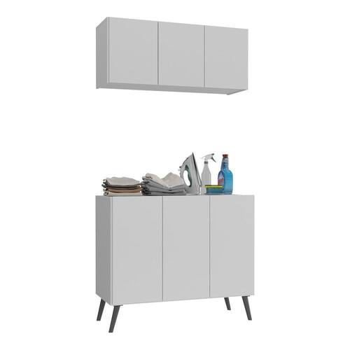 Transforme sua lavanderia num ambiente funcional e elegante com o Conjunto Lavanderia Retrô Multiuso Armário Aéreo e Balcão 3 Portas Multimóveis MP5050. Fabricado em MDP (15mm) com acabamento acetinado (cerca de 20% de brilho), garante durabilidade e resistência. Composto por um balcão e um armário aéreo com 3 portas e prateleiras, este kit oferece amplo espaço interno para organizar produtos de limpeza e outros itens de lavanderia. O balcão ainda permite apoiar suas roupas, deixando o ambiente organizado, e possui pés retrô em polipropileno que oferecem estabilidade e um charme vintage. O design clean confere um visual moderno e estiloso ao kit. Conteúdo da Embalagem: 1 (um) Balcão 1 (um) Armário Aéreo Manual de Montagem Kit Ferragem