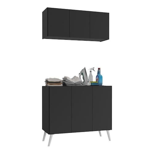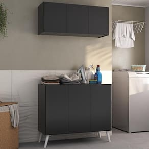 Transforme sua lavanderia num ambiente funcional e elegante com o Conjunto Lavanderia Retrô Multiuso Armário Aéreo e Balcão 3 Portas Multimóveis MP5050. Fabricado em MDP (15mm) com acabamento acetinado (cerca de 20% de brilho), garante durabilidade e resistência. Composto por um balcão e um armário aéreo com 3 portas e prateleiras, este kit oferece amplo espaço interno para organizar produtos de limpeza e outros itens de lavanderia. O balcão ainda permite apoiar suas roupas, deixando o ambiente organizado, e possui pés retrô em polipropileno que oferecem estabilidade e um charme vintage. O design clean confere um visual moderno e estiloso ao kit. Conteúdo da Embalagem: 1 (um) Balcão 1 (um) Armário Aéreo Manual de Montagem Kit Ferragem