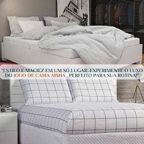 Descubra o paraíso do descanso com o Conjunto de Lençol Casal Queen Size Aisha 100% Algodão Ideal para quem busca qualidade, maciez e conforto em cada detalhe da roupa de cama.