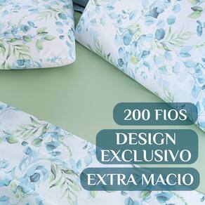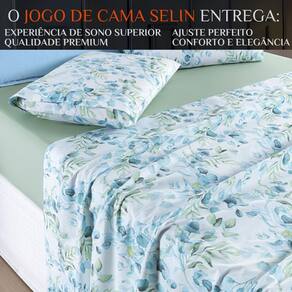 Conjunto De Lencol Casal Queen Size Selin Algodao Estampada COTTON Cor: VERDE