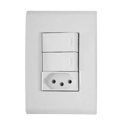 - Conteúdo: 1- placa 4x2, 2- interruptores simples e 1- tomada 10a