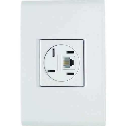 O Conjunto 4x2 com 1 Tomada Telefone 4P e RJ11 Tramontina Liz Branco vai deixar a conexão do seu telefone muito mais funcional e eficaz. Produzido em termoplástico branco, ele vai garantir maior praticidade e proporcionar um acabamento perfeito entre a placa e a parede, sem deixar frestas e vincos na instalação. Além disso, possui furo oblongo que facilita a fixação e a regulagem da placa à parede e evita que ela fique desalinhada. Sua fixação não é aparente e pode ser utilizada tanto em paredes de alvenaria, quanto em paredes de madeira. A placa ainda pode ser trocada por outras cores da linha, garantindo maior versatilidade. A Tramontina tem tudo para garantir uma casa mais completa e equipada!